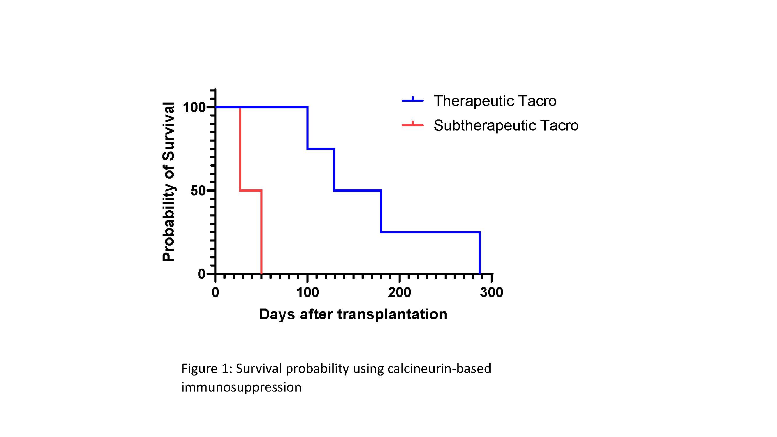 Conclusion: This study provides the first evidence that conventional, FDA-approved immunosuppression regimens can be used to achieve long-term xenograft survival in pig-to-NHP solid organ transplantation. These data help to resolve an important discrepancy between preclinical pig-to-NHP xenotransplantation data and the clinical allotransplantation experience, and point to a possible explanation – the challenges of maintaining therapeutic calcineurin inhibitor levels – as to why previous studies have failed to demonstrate survival >30 days.