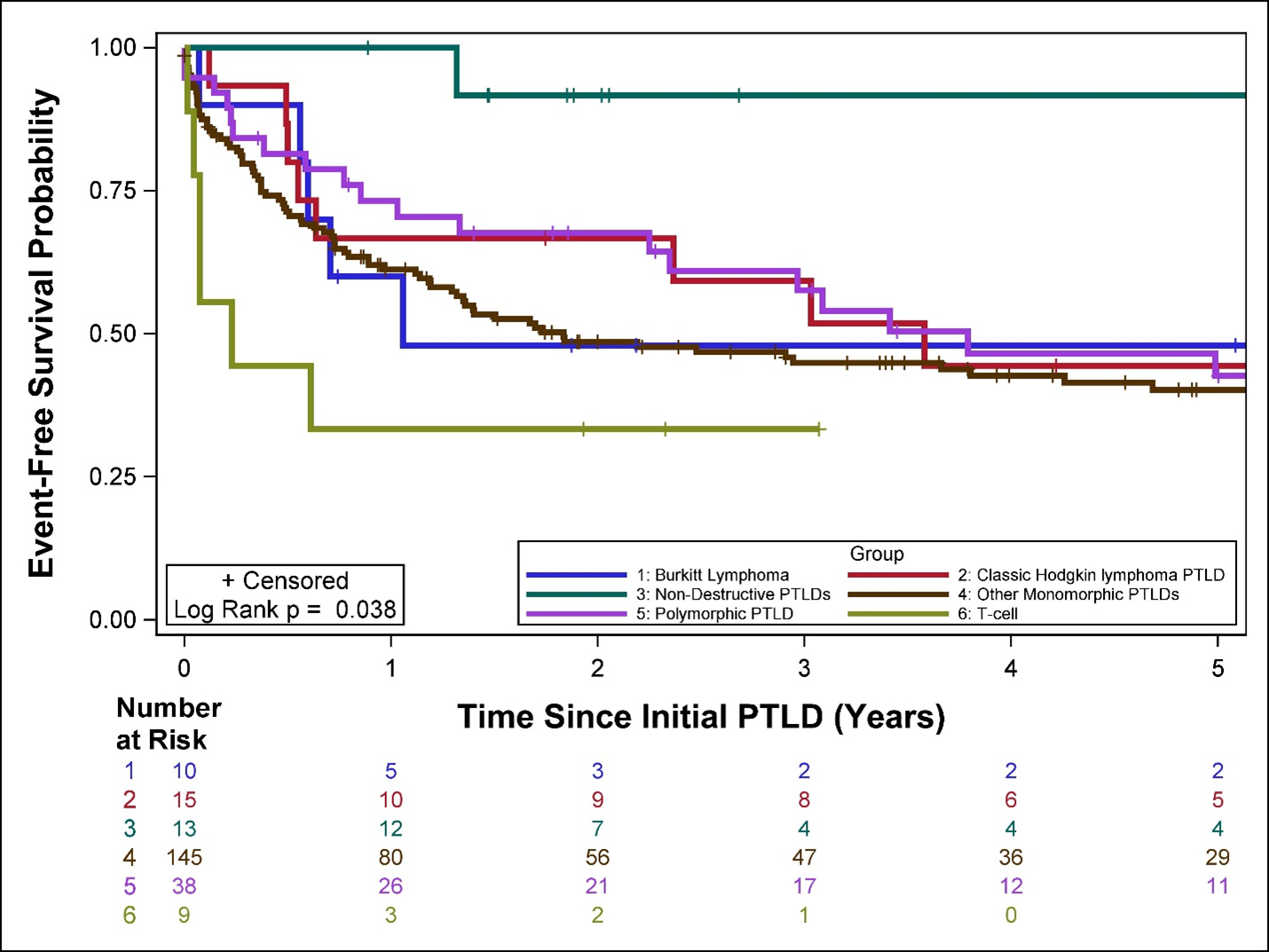 Conclusions: In this large multicenter series, 5-year event-free survival was impacted adversely by certain WHO types and by certain organ transplant types, even after adjustment for multiple clinical covariates.