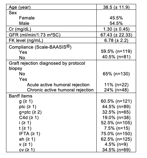 Subclinical humoral rejection (acute or chronic) was diagnosed in 35% of the patients, microvascular inflammation in 32.7%.