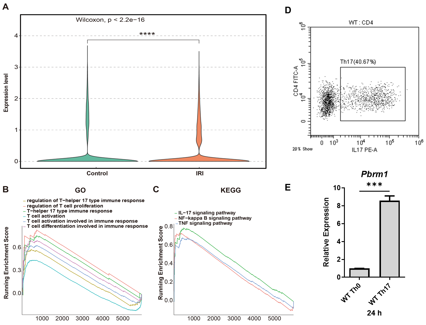 Results: Immunohistochemical staining showed that the expression of Pbrm1 in IRI group was significantly higher than that in Control. GSE180420 database analysis showed that Pbrm1 expression was significantly increased in IRI group compared with Control, and GSEA results suggested that Pbrm1 could promote the function of Th17 cells. In vitro experiments confirmed that the transcription level of Pbrm1 was significantly increased in Th17 cells compared with Th0 cells.
