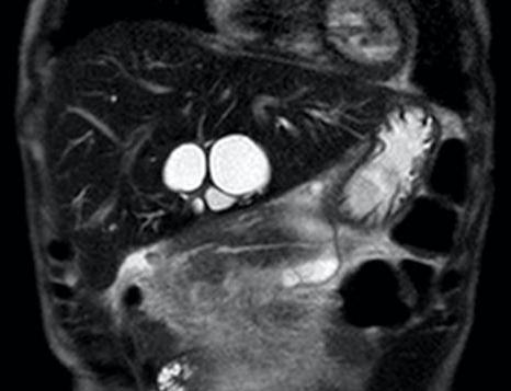 Case 3: a 45 y old man, with a MVT for Gardner´s syndrome with a big duodenal adenoma with severe dysplasia and short bowel syndrome. He showed progressive cholestasis after 6 weeks, starting with ursodeoxycholic acid, and biliary sludge after 10 weeks. He had an ERCP with biliary sludge and microlithiasis removal. A stent was avoided. A second ERCP was done 18 weeks after MVT, without stenting. The patient is now (5 1/2 months after MVT) without symptoms and normal LFTs.