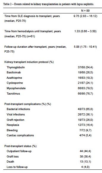 Clinical characteristics of lupus nephritis patients submitted to kidney transplantation in a single center