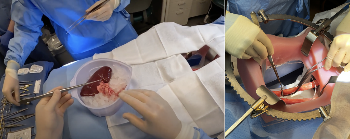 Methods: Our team developed a task analysis and use-related risk analysis (URRA) for a device intended for intraoperative cooling during kidney transplants. The URRA identifies potential use errors and guides usability protocol evaluations with a focus on critical tasks that may cause serious harm. Materials and supplies, estimated ~ $1000 USD, were obtained with surgeon input to simulate the vascular anastomoses of a kidney transplant. Supplies included a mock operating room table, lighting, sutures, vascular clamps and instruments, along with porcine kidney and aorta specimens (Figure 1). The iliac fossa was replicated with a previously validated 3-dimensional model1 that was modified into a soft tissue-mimicking silicone mold (Figure 1). A usability protocol was developed to evaluate use of the device (Figure 2). Transplant surgeons were recruited for the study.