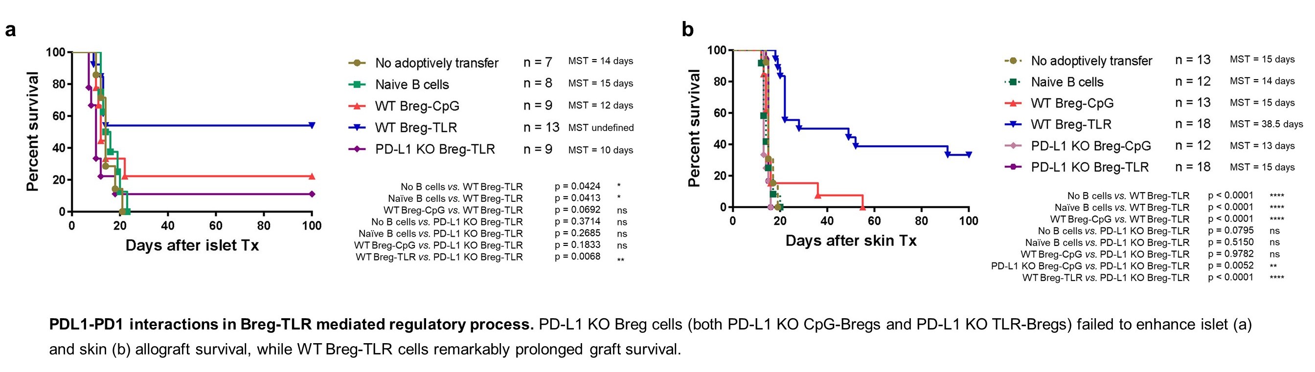 Introduction: We aim to elucidate the crucial role of PDL1-PD1 signaling in the modulation of anti-graft responses by TLR-Bregs.