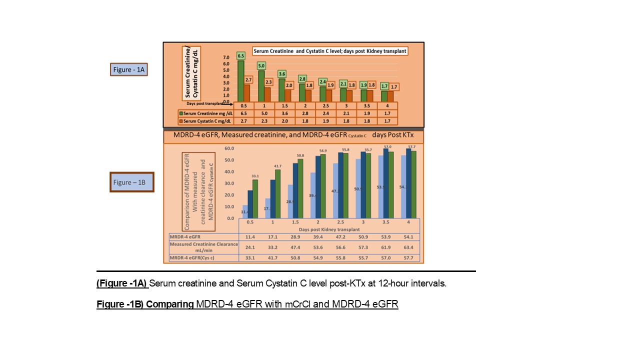 1) compare immediate post-KTx serum creatinine with serum Cystatin-C.