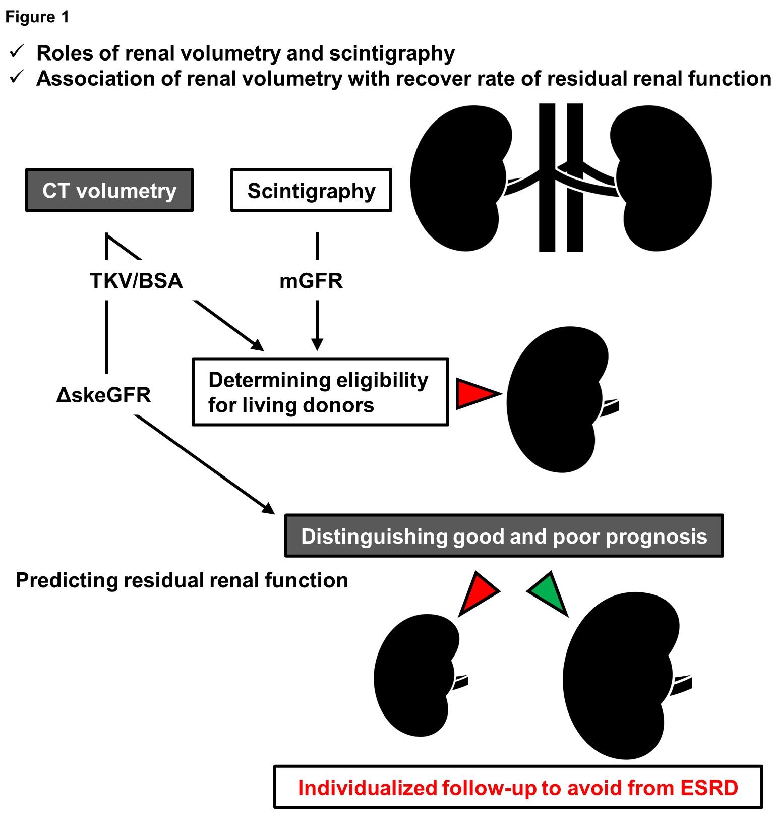 Introduction: Detailed criteria of living kidney donors (LKDs) have been still controversial in Japan, where living donor kidney transplantations are common because of the severe shortage of deceased donor sources. Transplant centers and surgeons are responsible for making decision considering balance the potential LKDs desire to donate against their future risk of end-stage renal disease and associated morbidity. In this study, the roles of volumetry and scintigraphy for preoperative and postoperative renal function were investigated and the association of volumetry and scintigraphy with the early recovery of residual renal function (RRF) was evaluated.