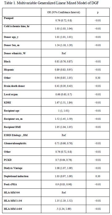 V310.5 Predictors of Delayed Graft Function in the United States: A Comprehensive Multivariable Analysis with a Focus on Hypothermic Machine Perfusion