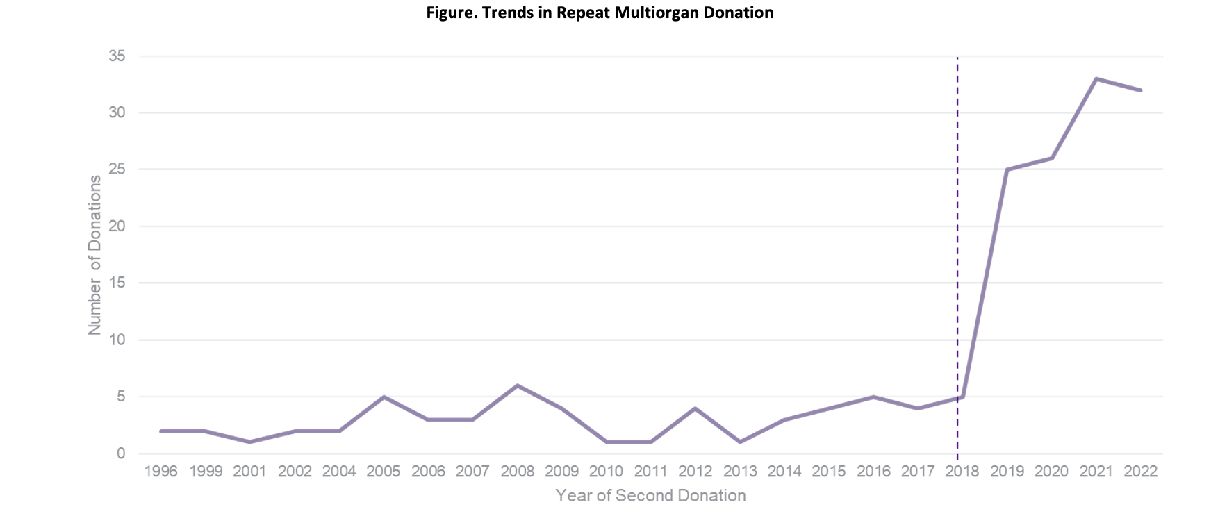 Conclusions: Repeat donation increased dramatically after 2018. Follow-up data for living repeat donors show outcomes comparable to FTDs. Our study suggests that repeat living donation can be a safe practice for carefully selected donors.