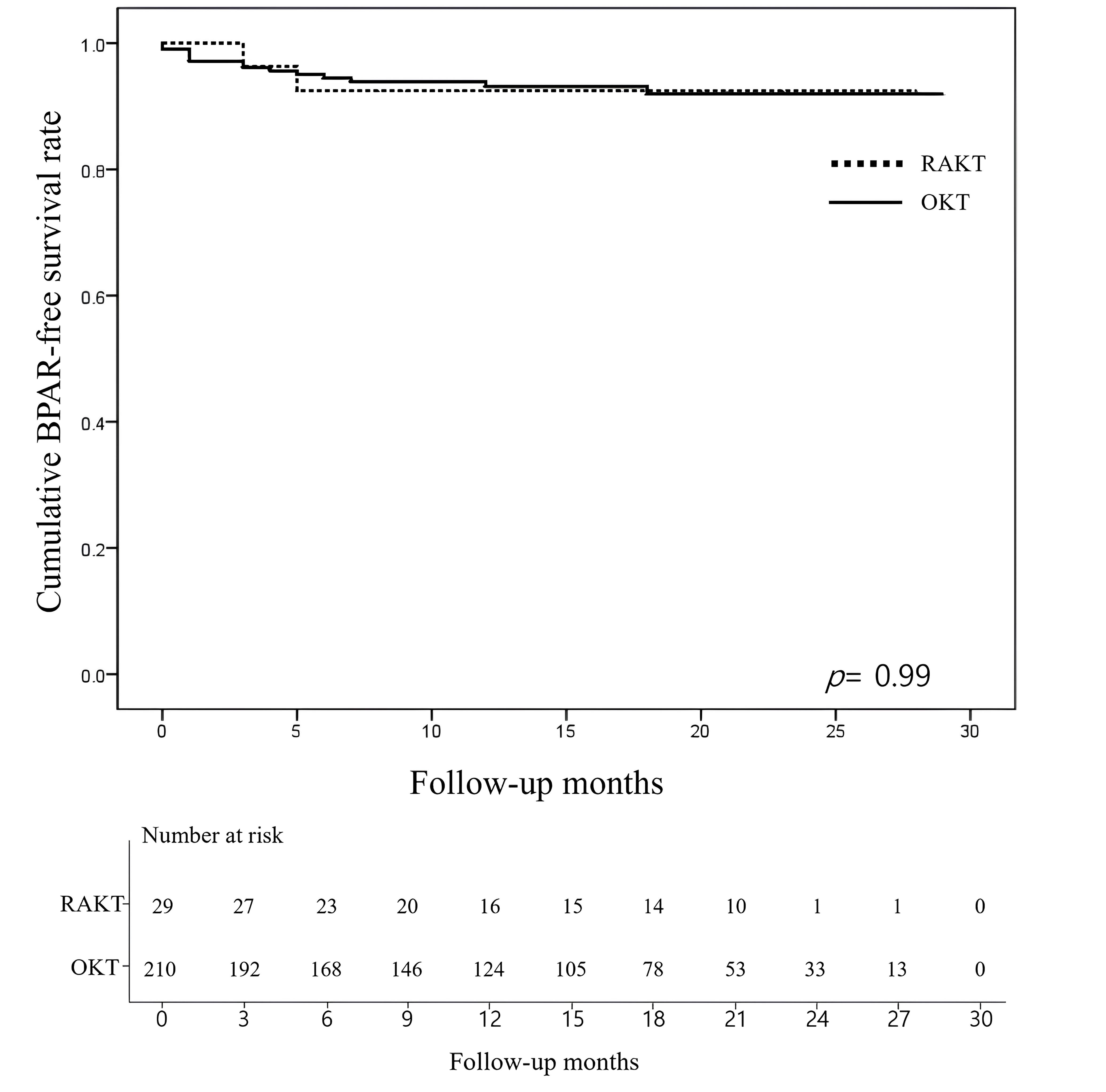 Results: Both RAKT and OKT groups showed comparable one and two-year BPAR-free