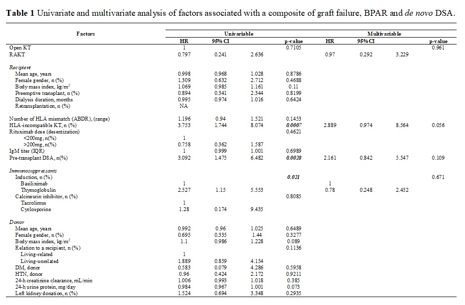 outcomes, graft survival, and renal function were assessed. A composite of biopsy-proven acuterejection (BPAR), graft failure, and the development of de novo donor-specific antibodies