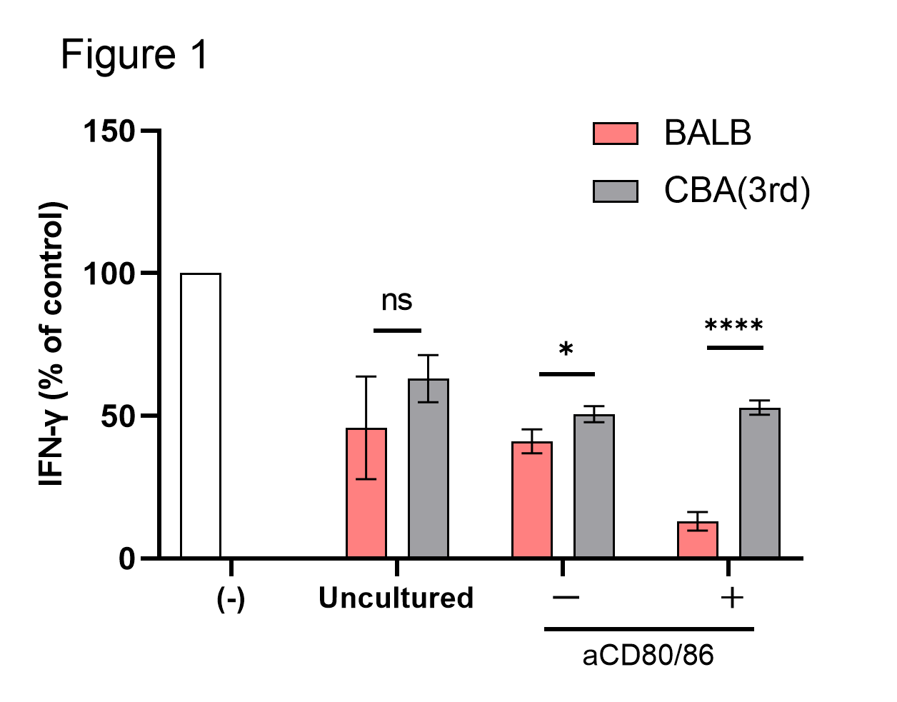 Results: The proliferation of Tregs was remarkably inhibited by anti-CD80/86 mAbs. Anti-CD80/86 mAbs significantly enhanced the suppressive function in a donor-specific manner (Figure 1). An increase in the concentration of IL-2 restored the proliferation of Tregs but inhibited the enhanced donor-specific suppressive function (Figure 2). TCR repertoire analysis showed that several Treg clones were expanded after allogeneic co-culture, but anti-CD80/86 mAbs limited the number of expanded Treg clones. Treg clones expanded during allogeneic co-culture with anti-CD80/86 mAbs were different between donor lymphocytes.