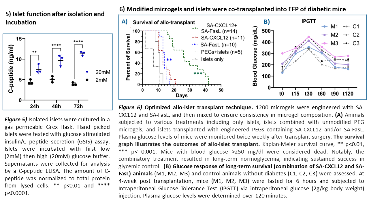 Conclusion: Allo-islet transplantation of combined SA-CXCL12 and SA-FasL engineered microgels with islets was successfully optimized. This study lays the groundwork for further preclinical investigation in the NOD/LtJ mouse model of autoimmune diabetes.