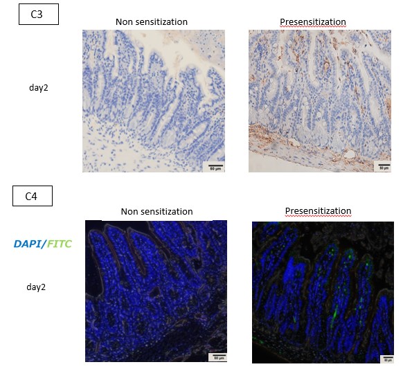 Conclusion: A presensitized mouse model of intestinal transplantation was successfully established. Our animal model might be a powerful tool to understand the pathogenesis of AMR and explore the effective treatment strategies. Furthermore, as with other solid organs transplantation, early detection of C3 and C4 depositions might be helpful for diagnosing AMR in intestinal transplantation.
