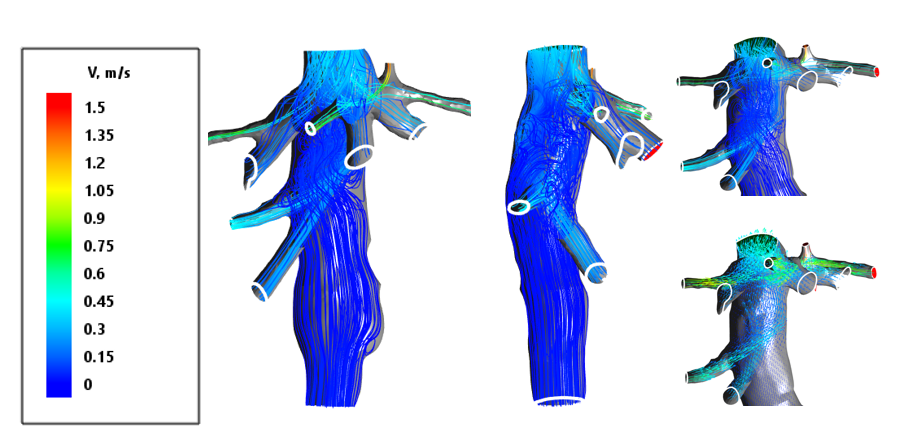 Materials and methods: We analyzed 700 cases of treatment of transplanted patients at the Moscow Liver Transplantation Center, 200 of whom had thrombosis of the portal vein system. Before transplantation, all patients underwent CT scanning of the abdominal organs with four-phase contrast, Doppler ultrasound blood flow, and intraoperative direct ultrasound flowmetry. DICOM data segmentation was performed using Dragonfly software (Object Research Systems, Canada) on the basis of the laboratory of mathematical modeling in medicine of the Moscow Medical University "Reaviz”. Methods of computational hemodynamics were implemented using the Visual-CFD application for OpenFOAM environment (ESI, France) and FlowVision app (TeSis, Moscow).