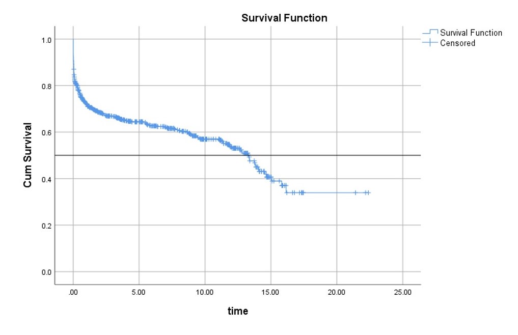 In the pediatric group, biliary atresia (25.4%), progressive familial intrahepatic cholestasis (16.6%), and Wilson’s disease (12.1%) were the most frequent etiologies for LDLT and the mean MELD/PELD score was 20. Univariable analysis indicated significant differences between patients who survived and those who did not in terms of age, graft weight, portal vein thrombosis, ascites, and donor sex. Out of the pediatric recipients, 272 (41.1%) died during the median follow-up period of 3.26 years.
