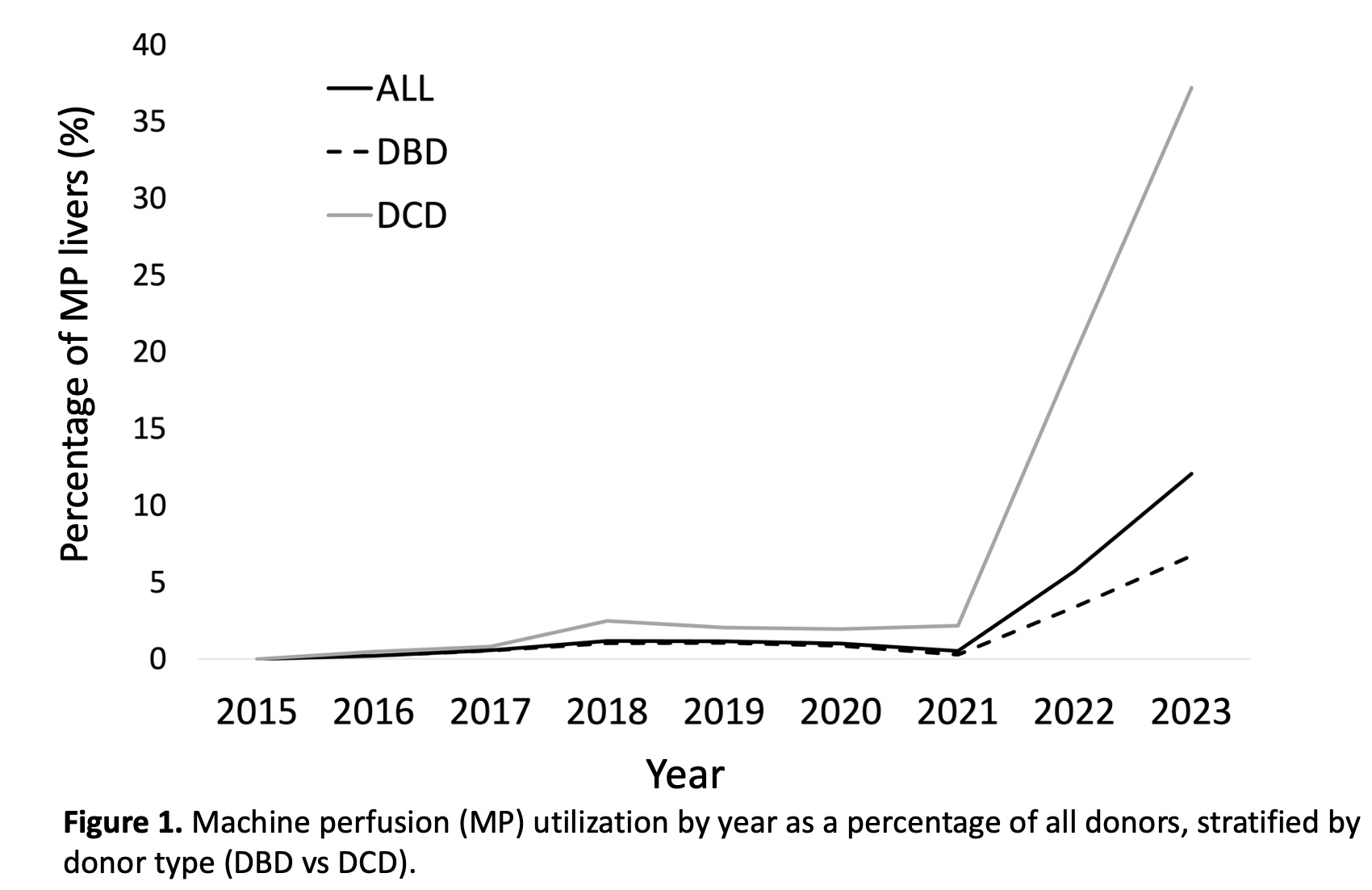 Conclusions: This study confirms a dramatic increase in the use of MP technology for liver allograft preservation in the United States, with associated increased rates of liver utilization and improved graft survival compared to SCS methods for grafts from DCD donors. Further monitoring of MP outcomes is required to understand the long-term benefits.