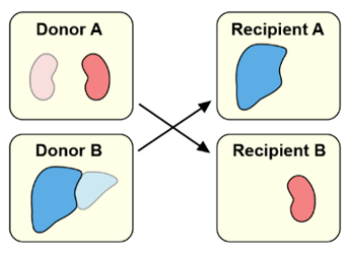 Introduction: Due to a shortage of available organs for transplant, many individuals with end-stage renal or liver disease die while on a waiting list. A liver-for-kidney exchange (LFKE) is a rarely performed paired exchange in which one donor donates a liver while another donor donates a kidney. In exchange, each recipient receives their needed organ (Figure 1). Some donors with organ-specific reasons for ineligibility could give a different organ than originally intended, thus increasing the number of living donors, potentially ameliorating the organ shortage. This study characterizes ineligible donor and transplant professional attitudes toward and concerns about LFKE.