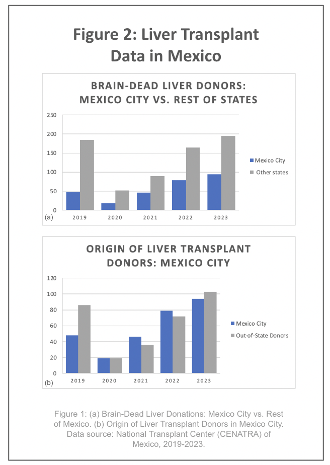 Methods: Data was abstracted from the National Transplant Center (CENATRA) of Mexico, a public data set, spanning 2019 to 2023 focused solely on liver transplantation from brain-dead donors. The number of DBD livers, state of origin of DBD livers, and liver transplant rates are reported as frequencies and percentages. Additionally, the number of transplant centers with active licenses are reported as frequencies. The frequencies are reported comparing the state of Mexico City compared to the total in all other states.