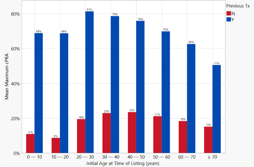 Method: 483,793 patients waitlisted between 01/01/2009 and 06/30/2023 in the US for deceased donor kidney transplants registered in the UNOS Standard Transplant Analysis and Research file (2023) have been analyzed. Dynamics of maximum cPRA reported for each waitlisted patient were calculated. Data analysis was conducted using JMP®, Version 16.2.0, SAS Institute Inc., Cary, NC USA.