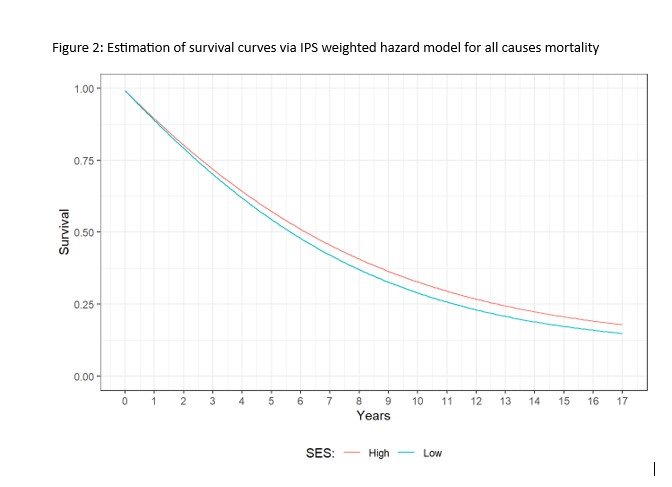 Introduction: The social gradient of health is significant and persuasive in patients with kidney failure but the causal pathways of this relationship are unknown. We aimed to assess the mediating effects of multimorbidity and geographical remoteness in the SES-death associations.