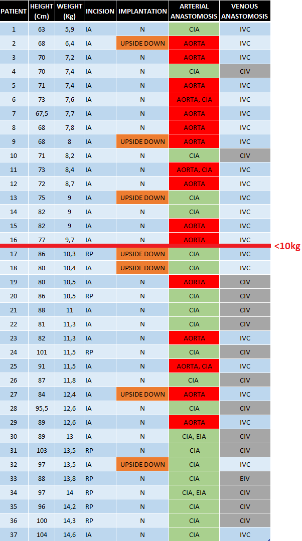 Introduction: Kidney transplantation (KTx) in low-weight children and infants using larger living donor adult kidneys is a challenging surgery with special characteristics.