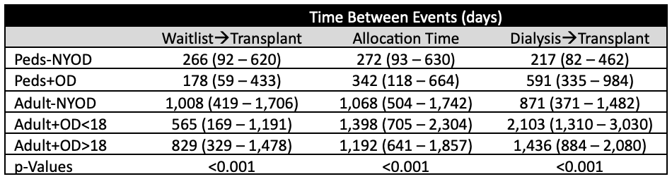 Conclusions: In the United States, current pediatric waitlisting policies disadvantage Adult+OD<18 candidates which initiate dialysis as pediatric patients but are waitlisted as adults, leading to the highest rates of non-transplant, longest time on dialysis, and worst graft survival for both LD and DDKT. These results may inform policy development globally and demand re-examination of these policies in the US.