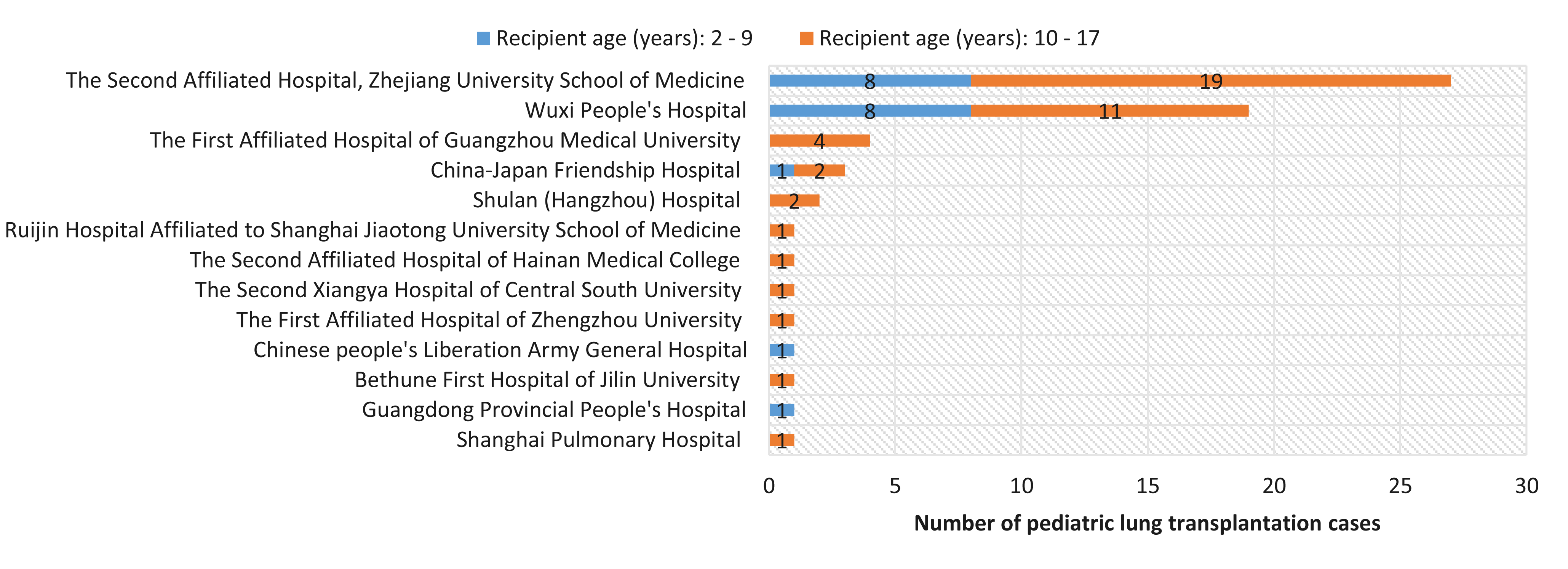 Results: A total of 63 transplants were performed in 62 pediatric patients in 13 hospitals during the study period. The annual number of pLTX increased from 9 in 2019 to 22 in 2023 in China. The 73.0% transplants were performed in the Second Affiliated Hospital, Zhejiang University School of Medicine (n=27) and Wuxi People's Hospital (n=19).