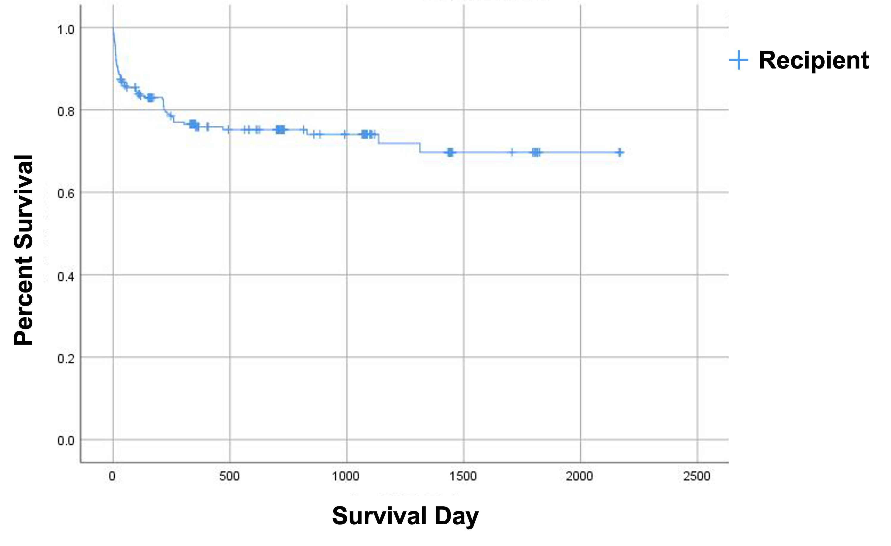 In 2018-2023, 87.8% of pneumoconiotic lung transplant donors were male, with an average age of 42.0±11.1 years in two centers. There were 97.3% of pneumoconiotic lung transplant donors who were brain dead, with a ventilator time of 6.0 (IQR:3.0-9.0) days and an oxygenation index of 420.3±85.7. In 2015-2023, 98.5% of pneumoconiotic lung transplant recipients at both centers were male, aged 48 ± 10.4 years, with the oldest aged 73 years and the youngest aged 23 years. In 2018-2023, the proportion of postoperative complications in pneumoconiotic lung transplant recipients was 32.3% for infections, followed by 23.8% for primary graft failure and 6.8% for anastomotic stenosis. In 2015-2023, the postoperative perioperative (<30 days), 3-month, 6-month, 1-year, and 3-year survival rates for pneumoconiotic lung transplant recipients were 88.2%, 84.6%, 82.5%, 75.9%, and 71.9%, respectively.